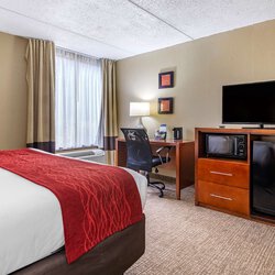 Near Novant Health Matthews Medical Center With a stay at Comfort Inn Matthews - Charlotte in Matthews, you'll be within a 15-minute drive of Spectrum Center and Charlotte Convention Center. This hotel is 11 mi (17.7 km) from Bank of America Stadium and 9.4 mi (15.1 km) from SouthPark Mall. Make yourself at home in one of the 93 guestrooms featuring refrigerators and LCD televisions. Your pillowtop bed comes with down comforters. Complimentary wireless internet access keeps you connected, and cable programming is available for your entertainment. Partially open bathrooms with shower/tub combinations feature complimentary toiletries and hair dryers. A complimentary buffet breakfast is served daily.