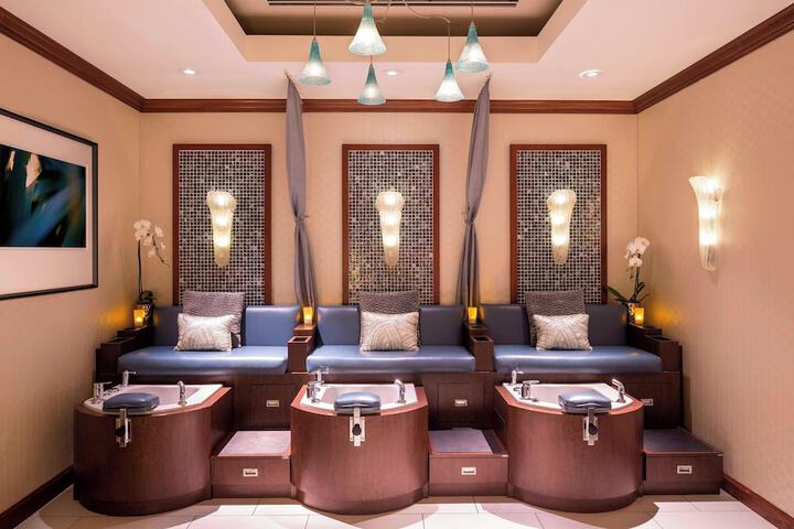 Near Venice Beach Located in Marina del Rey, The Ritz-Carlton, Marina del Rey is in a state park, a 2-minute drive from Abbot Kinney Boulevard and 7 minutes from Venice Beach. This luxury hotel is 3.8 mi (6.1 km) from Santa Monica Pier and 4.8 mi (7.8 km) from Sony Pictures Studios. Stay in one of 304 guestrooms featuring Smart televisions. Your pillowtop bed comes with Egyptian cotton sheets. Rooms have private balconies. Complimentary wireless internet access is available to keep you connected. Private bathrooms with shower/tub combinations feature designer toiletries and hair dryers. Enjoy a meal at the restaurant, or stay in and take advantage of the hotel's 24-hour room service. Unwind at the end of the day with a drink at the bar/lounge or the poolside bar. Cooked-to-order breakfasts are available daily from 6:30 AM to 11 AM for a fee.Amenities